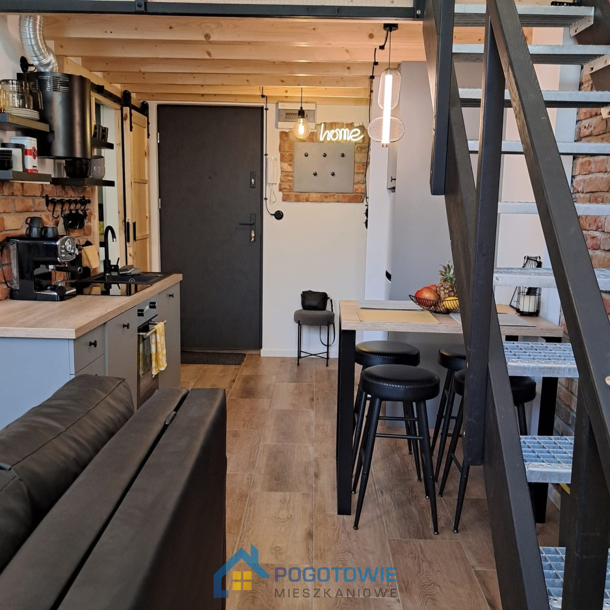 Lokal jest dwupoziomowy, bardzo jasny i funkcjonalny, w pełni wyposażony w AGD.
